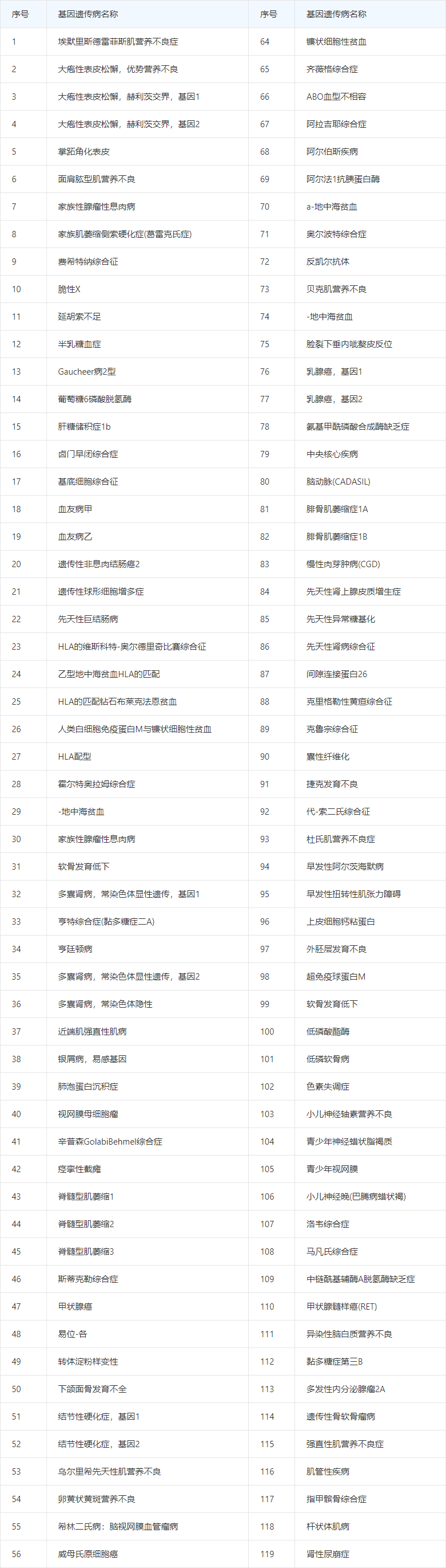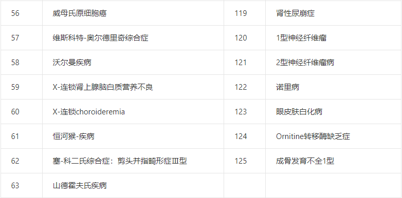 上面表中就是三代试管可筛查的常见基因遗传疾病,当然第三代试管技术能筛查的疾病远远不止125种,随着医学技术的不断进步与发展,可被诊断筛查的遗传基因疾病种类也会越来越多,能够有效帮助人类社会繁衍优质的后代,并起到非常重要的作用。
